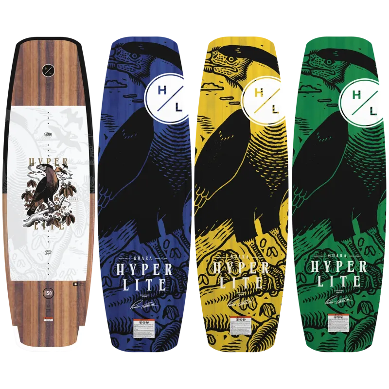 Pedro Caldas has been lighting up wake parks around the globe and competing at the highest levels of the sport. Hailing from Brazil, Pedro’s pro model wakeboard is dubbed – The Guara! Featuring Hyperlite’s BIO-RESIN System, featured exclusively on the Guara, fulfilling Pedro’s wishes for a more sustainable construction process. Combine our new bio-resin with Hyperlite’s Woodlite Core, sustainable Paulownia trees, and you have the most Eco-Friendly cable board on the market today. Ride wise, The Guara is fast on edge and during landings with a slightly stiffer flex pattern ideal for mastering air tricks. The Reinforced Deck maintains a solid feel while allowing the tip and tail to flex more easily pressing on rails. Wrapped with our Urethane Sidewall atop the Sintered Base, the Guara is durable and built to withstand multiple seasons of shredding