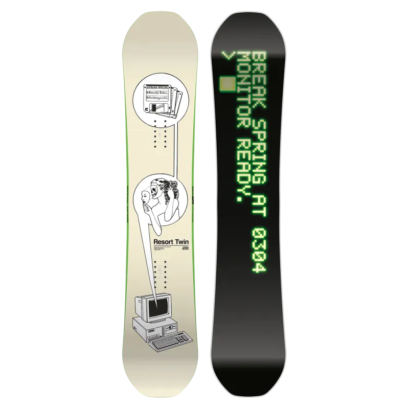 Tech Story SB RESORT TWIN Spring Break Resort Twin forener den unikke stemning fra tropisk snowboarding i Spring Break med en ordentlig twin freestyle-form rettet mod masserne. Med taljebredder, der er mere i tråd med konventionelle freestyle- og resort-snowboards, og en ikonisk twin-silhuet, der respekterer sin storebror, S.B. Powder Twin, er disse dine hverdags resort-snowboards til fans af Spring Break.